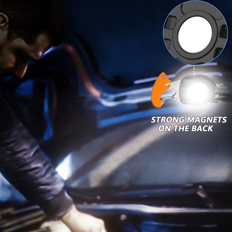 This COB keychain light is equipped with 2 size screwdrivers + 1 whistle+ bottle opener + cutter+ lighter, which is perfect for handling various emergencies.